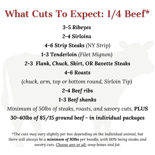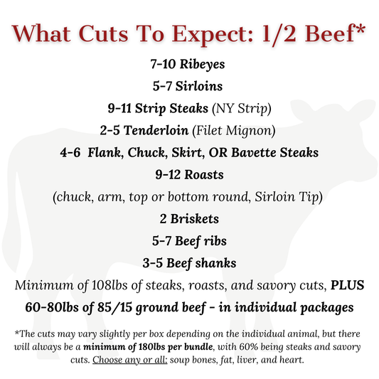 Our beef is nutrient dense, bursting with real flavor, and without the chemicals, hormones, and cheap fillers in grocery store beef. You will notice the difference in our beef immediately!We literally guarantee it with our 100% Money Back Guarantee!